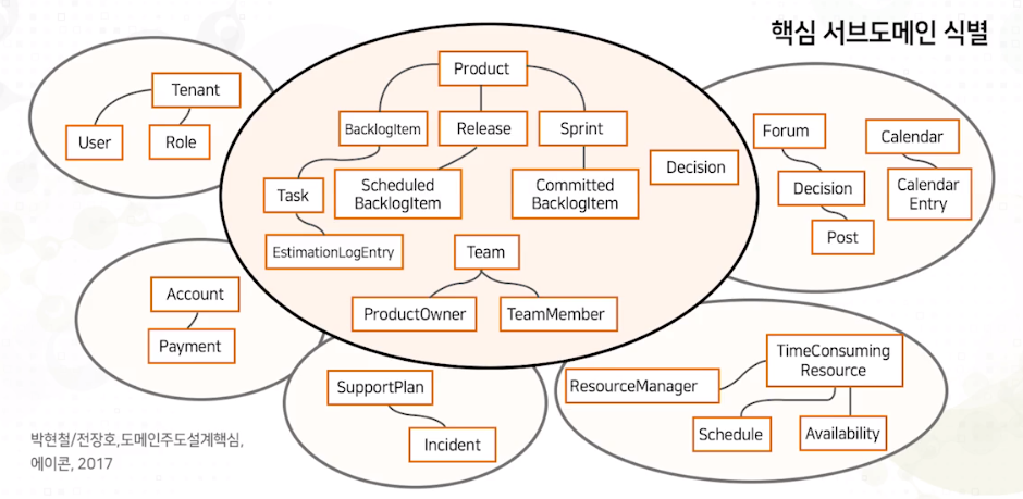 이렇게 서브도메인을 식별하는 과정을 통해 프로젝트에서는 비즈니스의 핵심 영역을 찾을 수 있고 또 각 핵심, 지원, 일반 서브도메인 간의 관계를 이해할 수 있게 됩니다.