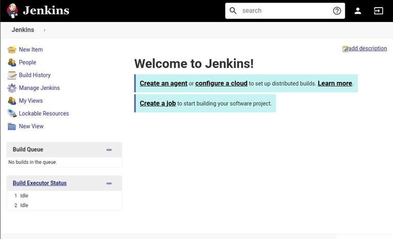 Start using Jenkins 버튼을 클릭하면 이전 단계 중 하나에서 만든 관리 사용자로 로그인한 Jenkins 대시보드로 리디렉션됩니다.