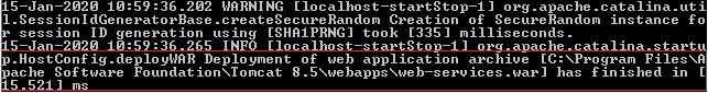 시작 명령은 아래와 같이 Tomcat 서버를 시작하고 WAR 파일을 배포합니다.