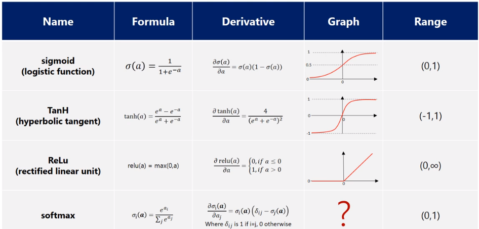 대부분의 그리스 문자를 포함하는이 표를 계속 탐색해 봅시다. softmax 함수에 명확한 그래프 y가 없다고 말했으므로 공식을 주의 깊게 살펴보면 이 함수와 다른 함수의 주요 차이점을 볼 수 있습니다. 따라서 softmax 함수는 위치에 있는 요소의 지수와 같습니다. 벡터의 모든 요소의 지수의 합으로 나눕니다. 따라서 다른 활성화 함수는 입력 값을 얻습니다.